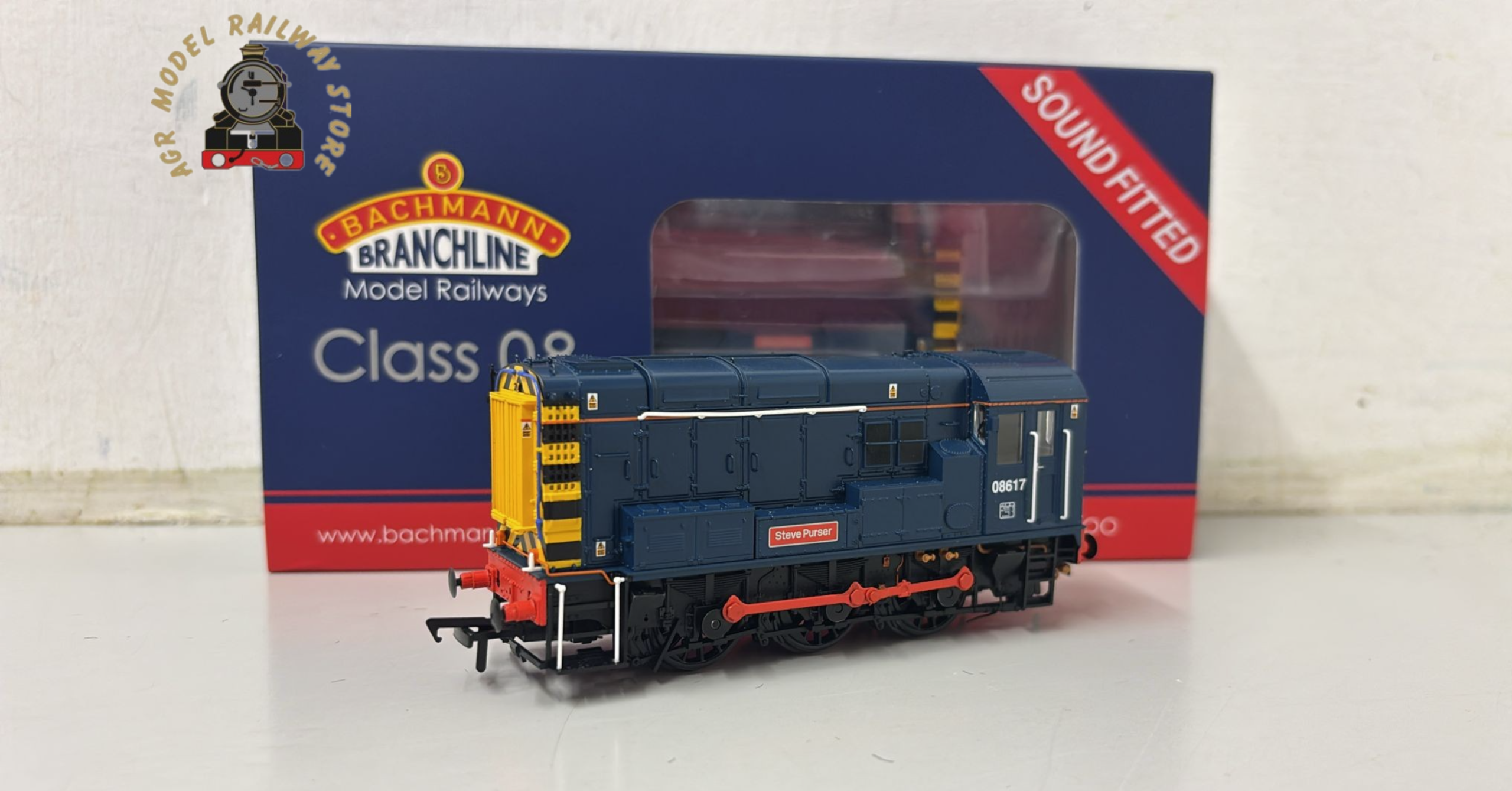 35-915SF Bachmann Class 08 Diesel Shunter number 08 617 “Steve Purser” – BR Blue