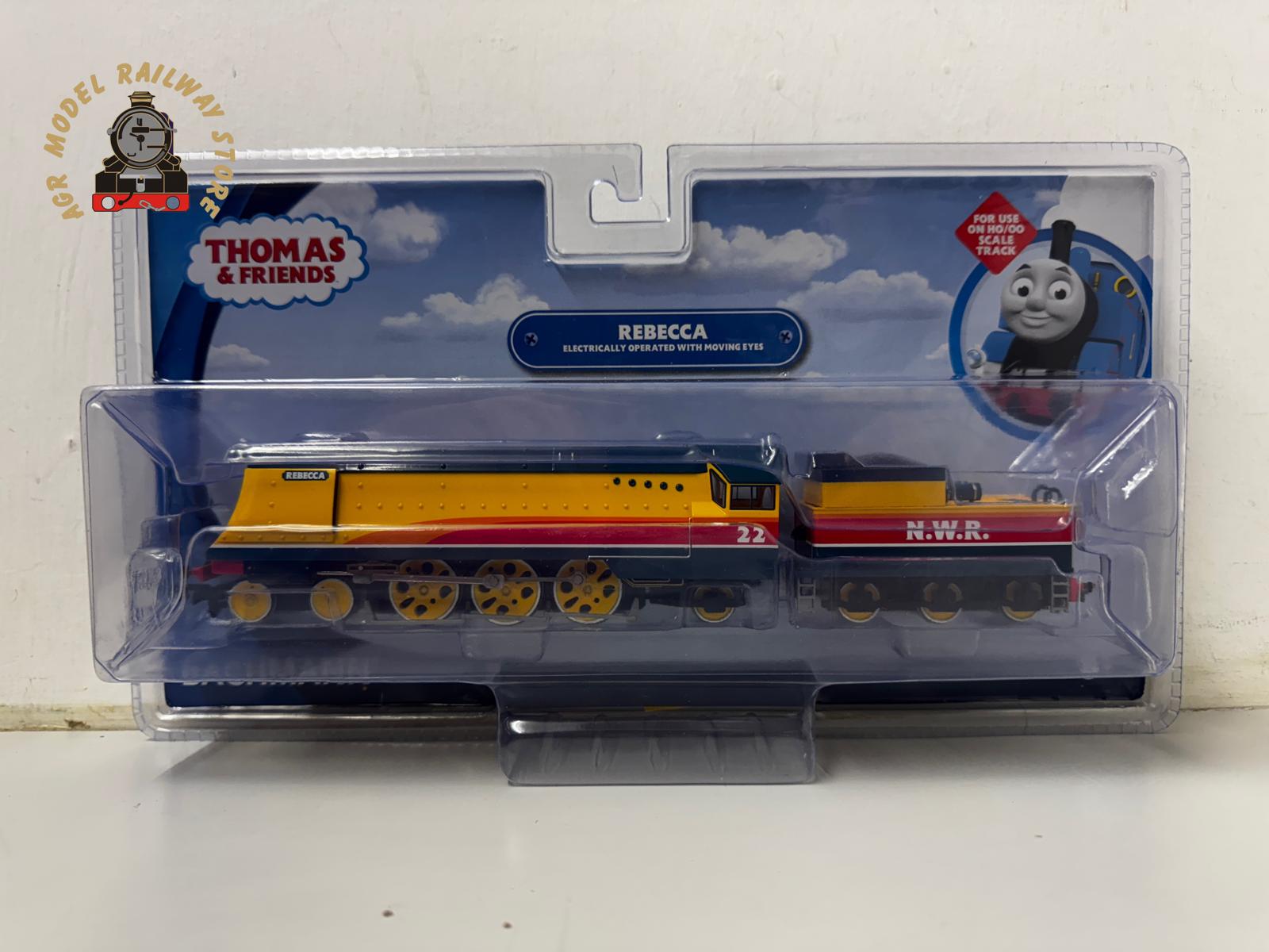 The newest member of the Steam Team, Rebecca is a large, cheerful engine, who helps Gordon with hauling the Express Coaches and handles other mainline jobs on the Island of Sodor. Bachmann carefully reproduces your favorite Thomas & Friendsâ„¢ characters in HO scale. All locomotives feature realistic faces with moving eyes, operating HO scale electric drive mechanisms, highly detailed plastic body shells, all-metal wheels, and international-style hook-and-loop couplers.