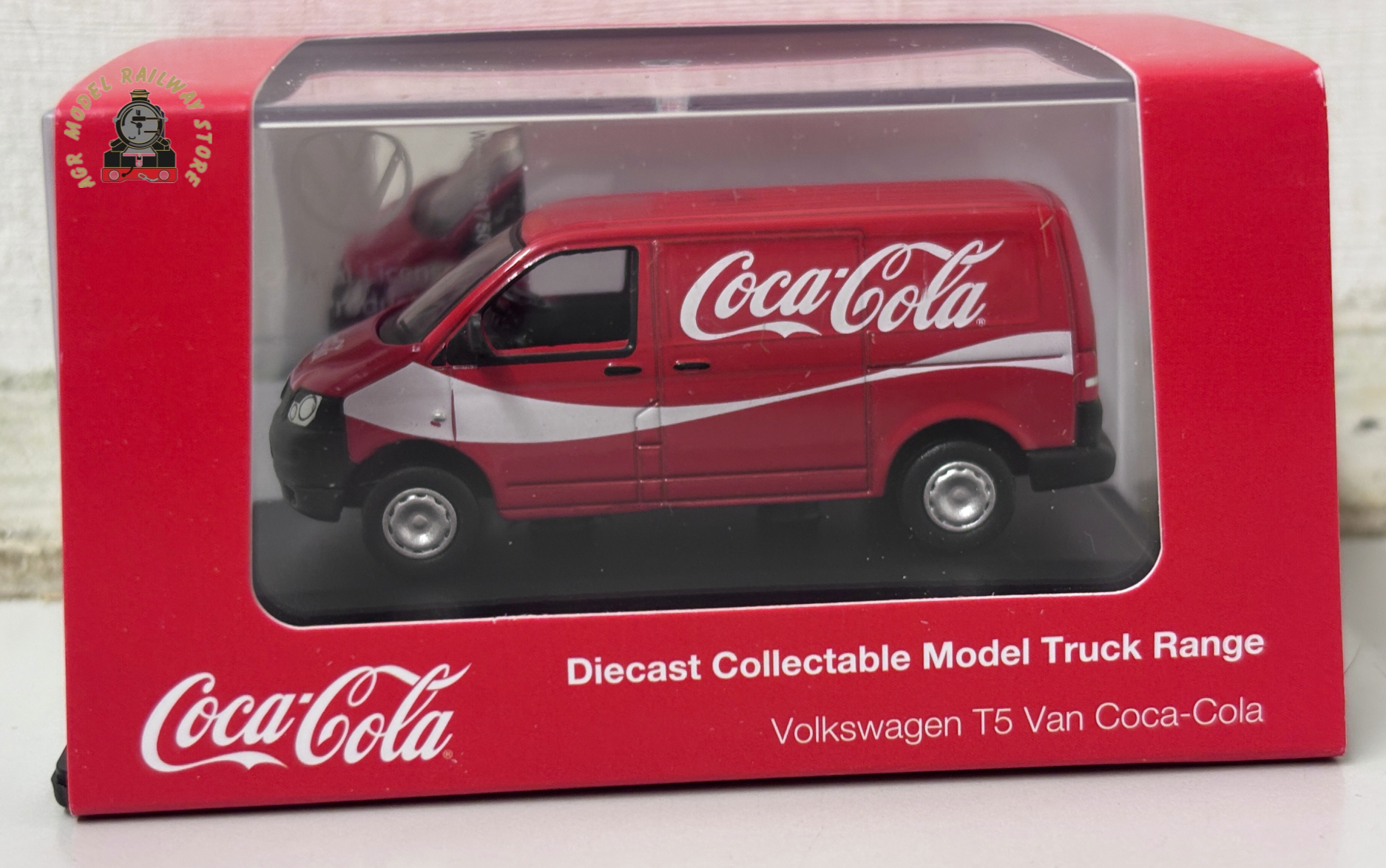 That famous Coke gets everywhere! This time it is the turn of the modern and versatile VW T5 Van to take on the trademark red and white livery of arguably the world’s most famous drink. Our 1:76 scale replica is registered CC55 DLA and apart from the silvered VW badges on the front and rear of the van and the silver wheel hubs, the exterior trim is predominantly black, as is the van interior. Add this latest release to your growing line-up of Oxford’s Coca Cola liveried models across the ages.